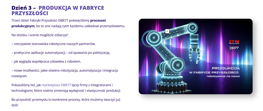 Podczas targów ITM Industry Europe 2025 powstała wyjątkowa przestrzeń - Fabryka Przyszłości stworzona przez DBR77 we współpracy z Grupą MTP. Dzięki tej strefie zwiedzający mogli doświadczyć, jak nowoczesne technologie, automatyzacja i robotyzacja zmieniają oblicze przemysłu. Scena Fabryki zgromadziła ekspertów, liderów branży, partnerów technologicznych oraz szerokie grono wystawców. Prezentujemy zapis z wybranych wystąpień Fabryki Przyszłości. Zachęcamy do obejrzenia!