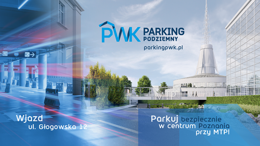 Zapraszamy na parking podziemny - Parking PWK. Trzypoziomowy parking posiada 650 miejsc parkingowych i zlokalizowany jest przy ulicy Głogowskiej 12 - wjazd tuż za budynkiem Centrum Targowego, na wysokości dworca PKP.