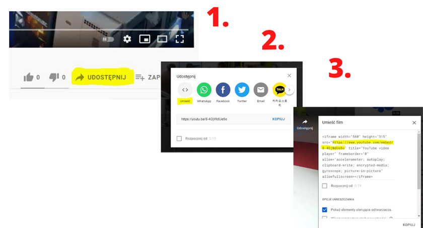 - The link to the video that we want to connect must be embedded in YT or Vimeo. Then: