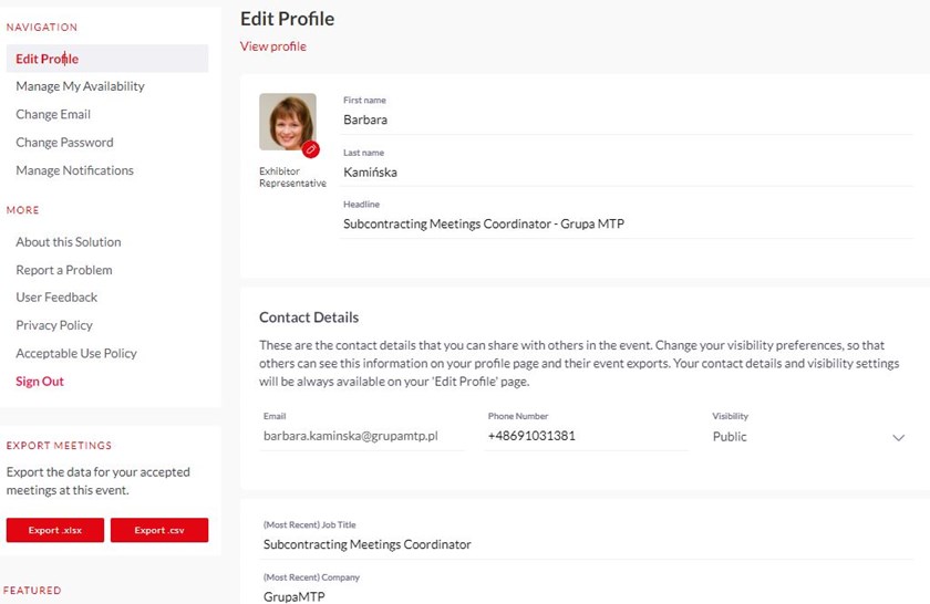 Data export to an excel file - after the fair you have the option to export data about the meetings and contacts made to an excel file