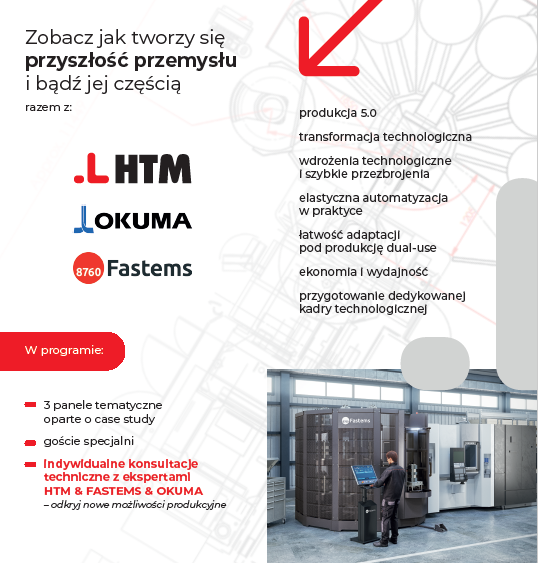 Sprawdź jak tworzy się przyszłość przemysłu! Zobacz panele tematyczne z zakresu automatyzacji przygotowane przez firmy: HTM, OKUMA i FASTEMS.