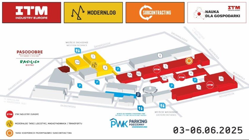Targi ITM INDUSTRY EUROPE odbędą się 3-6.06.2025 na terenie Międzynarodowych Targów Poznańskich. W tym samym czasie będzie można jednocześnie zwiedzić ekspozycję: Nauka dla Gospodarki, Targów Logistyki, Magazynowania i Transportu Modernlog oraz Targi Subcontracting.