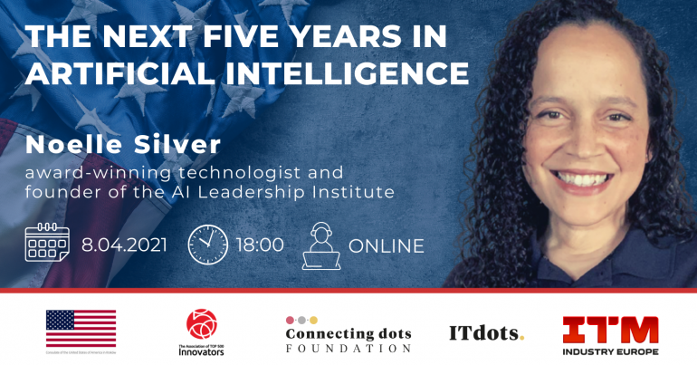 W imieniu Konsulatu USA w Krakowie, Stowarzyszenia Top 500 Innovators oraz Fundacji Connecting Dots zapraszamy na spotkanie online The Next Five Years in Artificial Intelligence - Predictions and Prophecies z Noelle Silver.