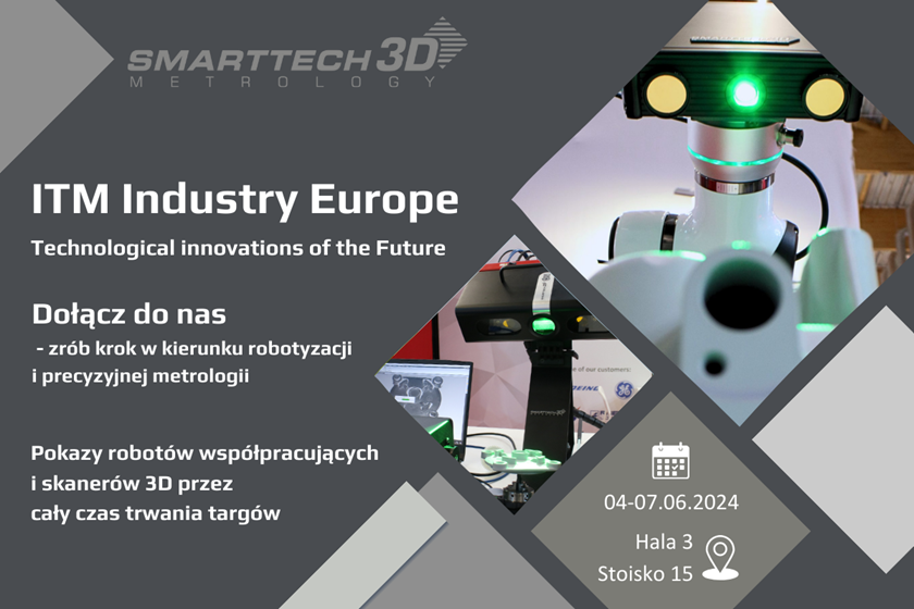 Przygotowania do ITM INDUSTRY EUROPE wchodzą w końcową fazę już w czerwcu na stoisku SMARTTECH zapoznać się będzie można z najnowszymi rozwiązaniami w dziedzinie robotyzacji i cyfryzacji. Panujący trend zastosowania robotów współpracujących stał się inspiracją dla najnowszych rozwiązań polskiego producenta skanerów 3D.