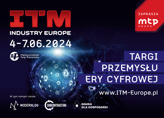 Targi ITM INDUSTRY EUROPE odbędą się 4-7.06.2024 na terenie Międzynarodowych Targów Poznańskich. W tym samym czasie będzie można jednocześnie zwiedzić ekspozycję: Nauka dla Gospodarki, Targów Logistyki, Magazynowania i Transportu Modernlog oraz Targi Subcontracting.